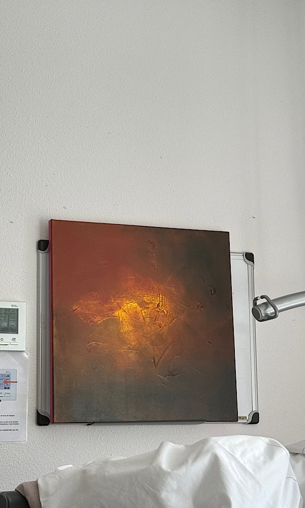 Wat mij meteen raakte waren de kleuren en de kracht van het werk. Het voelt voor mij als licht aan het eind van de tunnel. Tijdens mijn herstel geeft het me iets positiefs om naar te kijken.