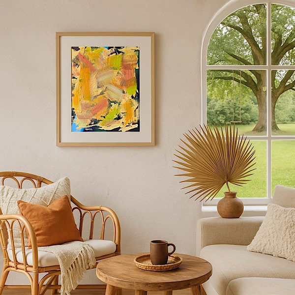 Autumn Dance captures the warmth of the season in sweeping brushstrokes of ochre, lime and terracotta. The movement in the layered textures evokes leaves swirling in the wind, a moment of energy and transition, held in paint.